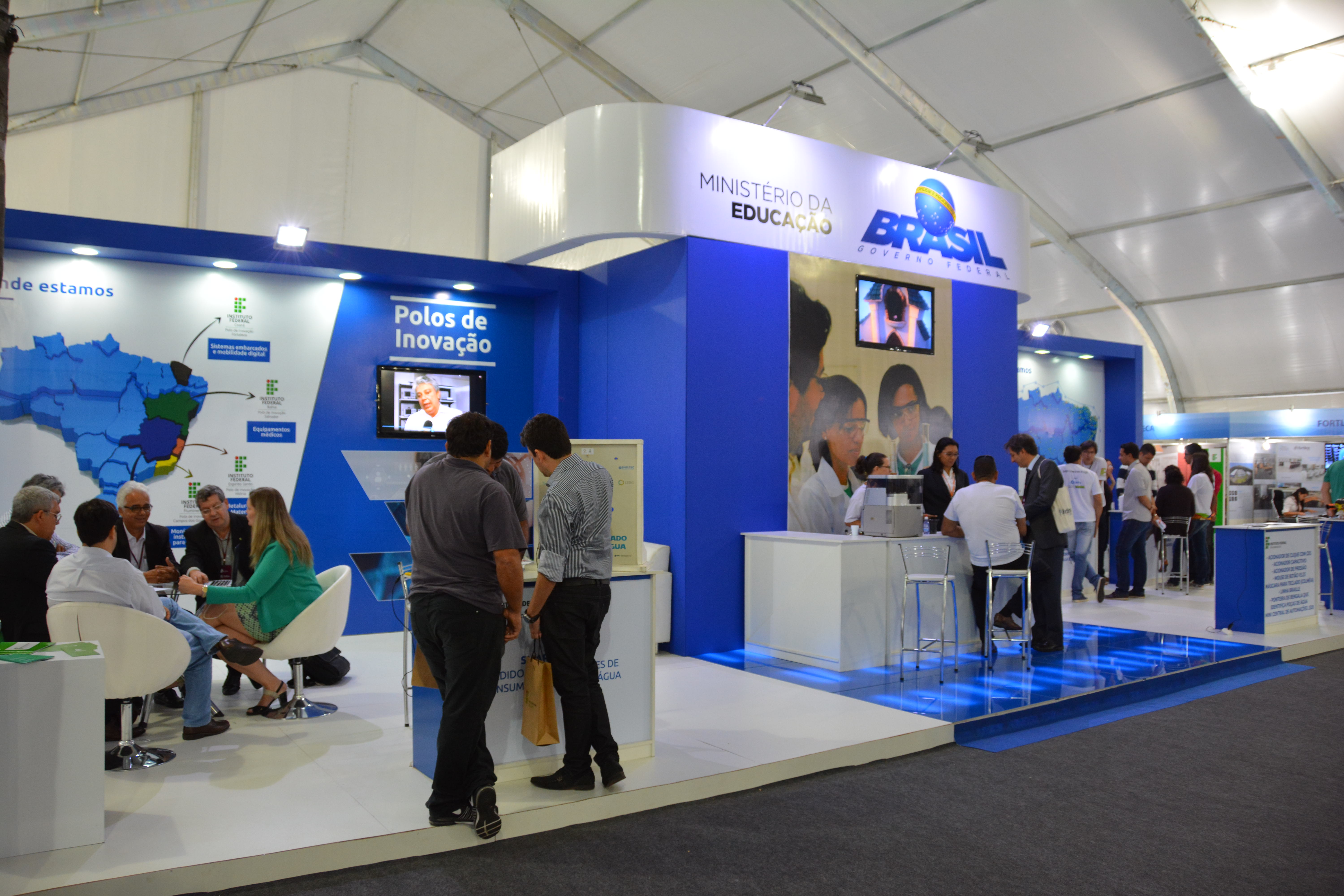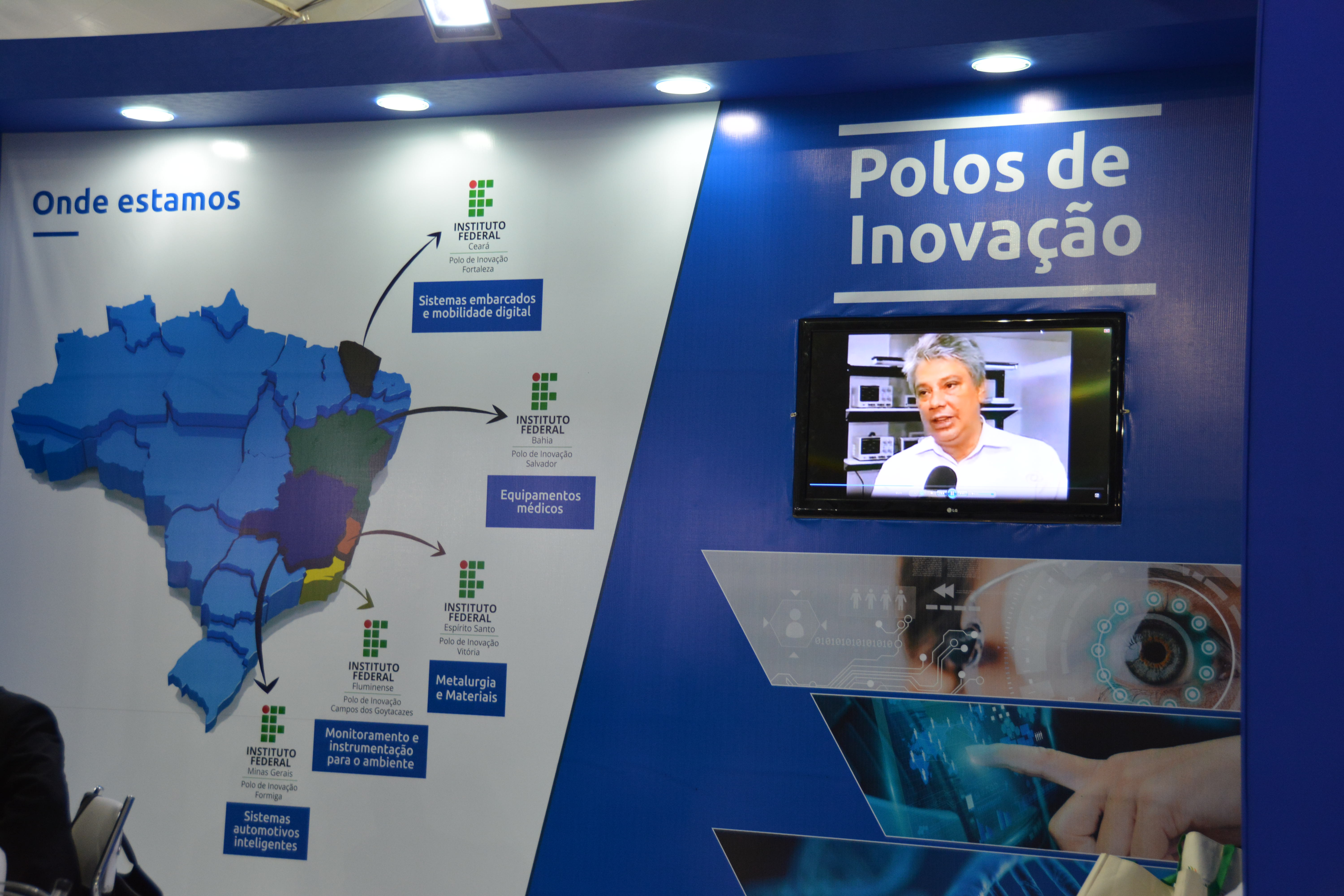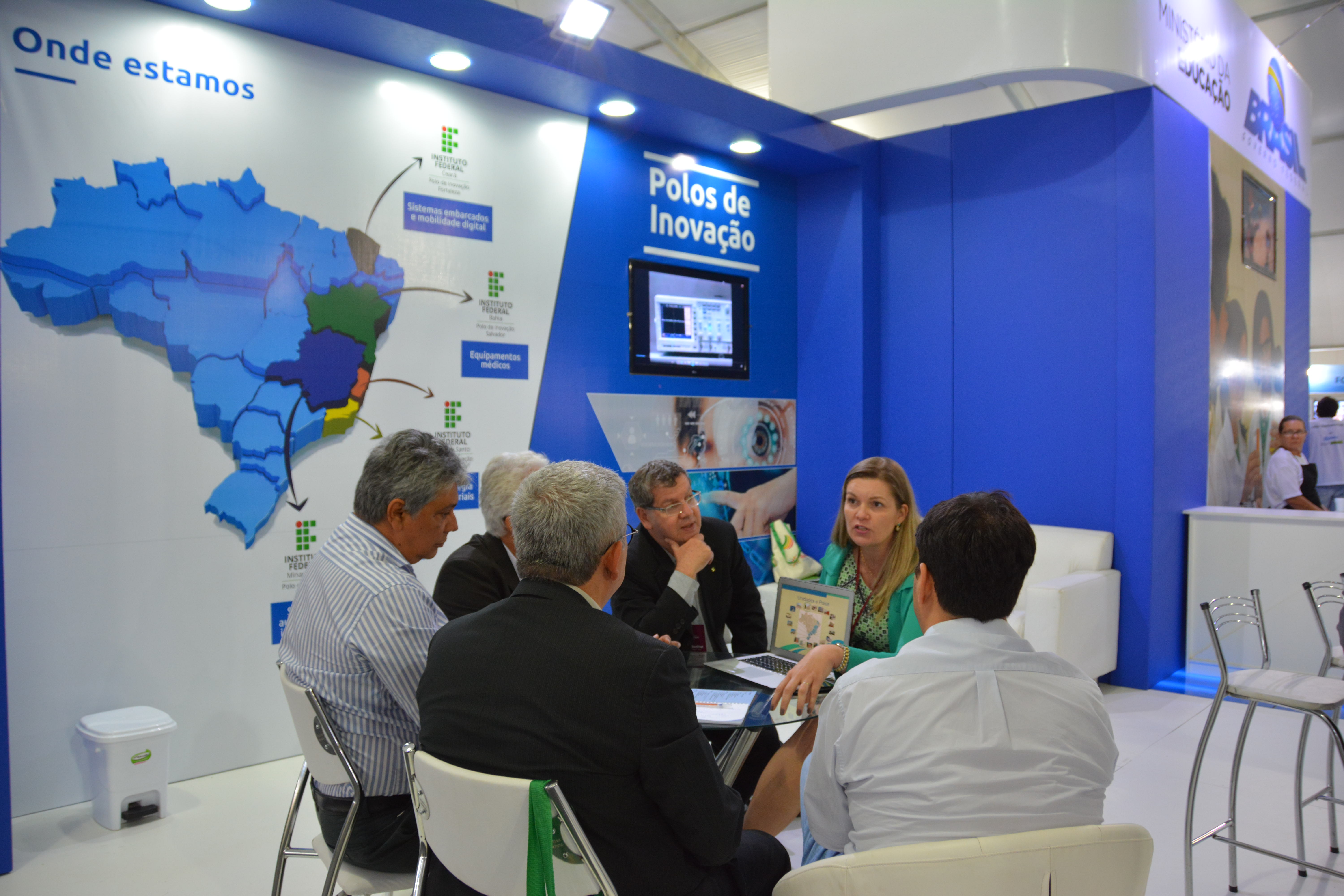 No estande promovido pela Secretaria de Educação Profissional e Tecnológica (Setec), do Ministério da Educação (MEC), marcaram presença os diretores do Polo de Inovação Campos dos Goytacazes, do Instituto Federal Fluminense (IFF); do Polo de Inovação Formiga, do Instituto Federal de Minas Gerais (IFMG); do Polo de Inovação Fortaleza, do Instituto Federal do Ceará (IFCE); do Polo de Inovação Salvador, do Instituto Federal da Bahia (IFBA), e do Polo de Inovação Vitória, do Instituto Federal do Espírito Santo (IFES).